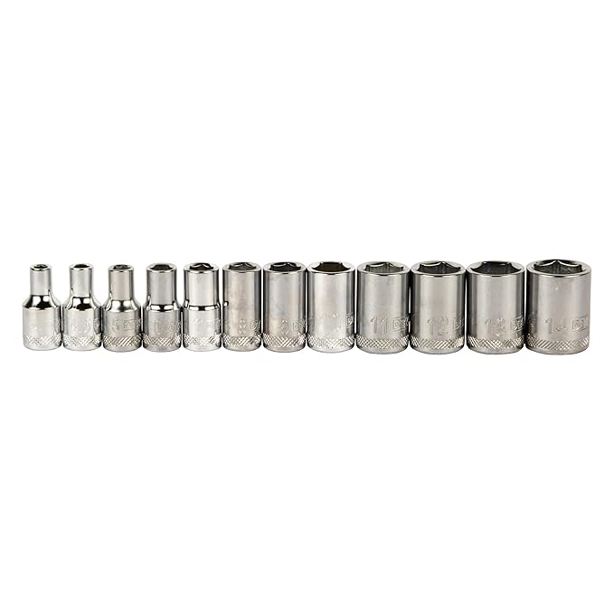 (12) 6 pt MM Sockets: 4, 4.5, 5, 6, 7, 8, 9, 10, 11, 12, 13, 14 mm